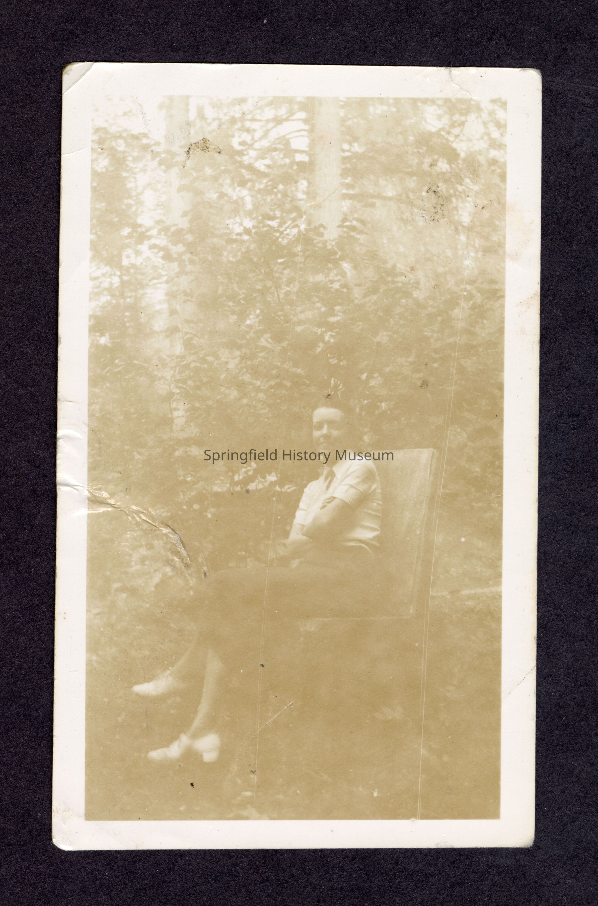 Sepia photograph of a woman seated outside. Undated.