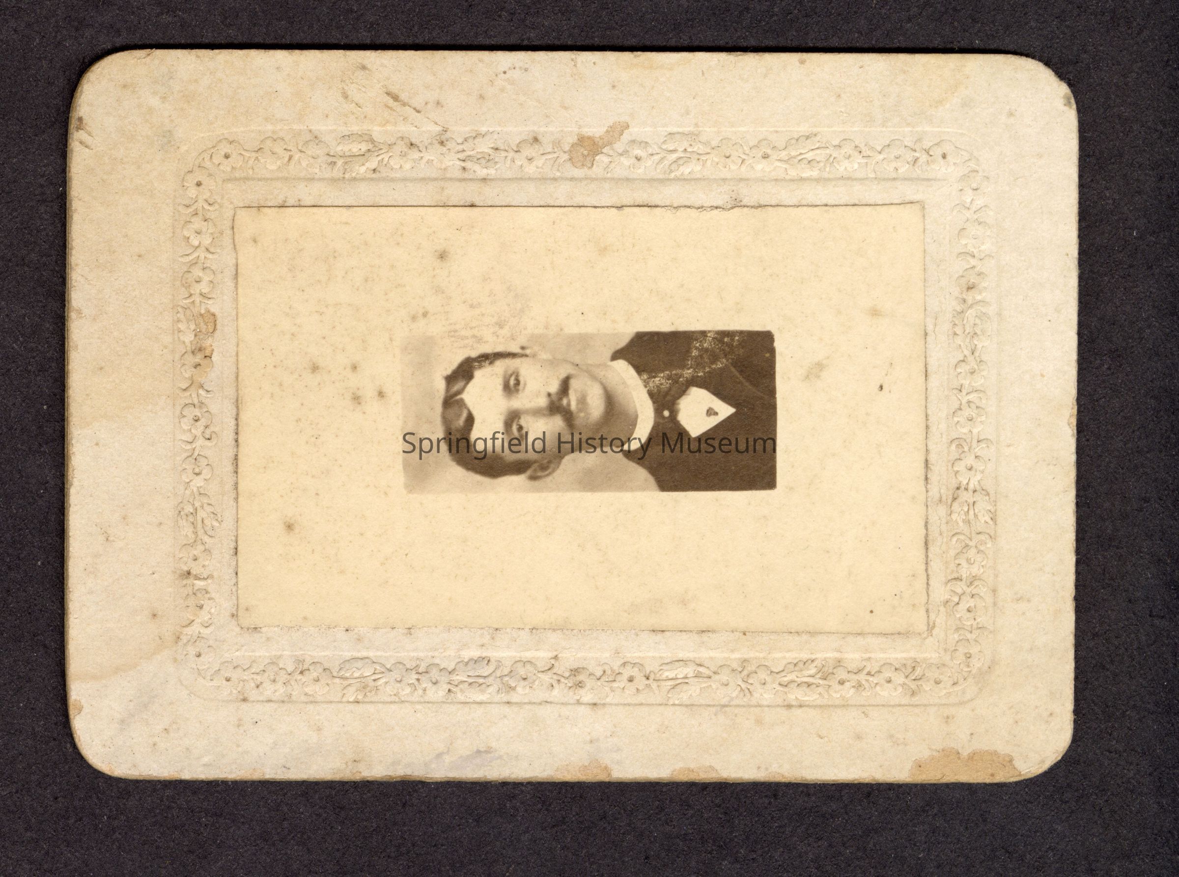 B&W Photo of a young man dressed in a suit, in a white paper frame.Collection