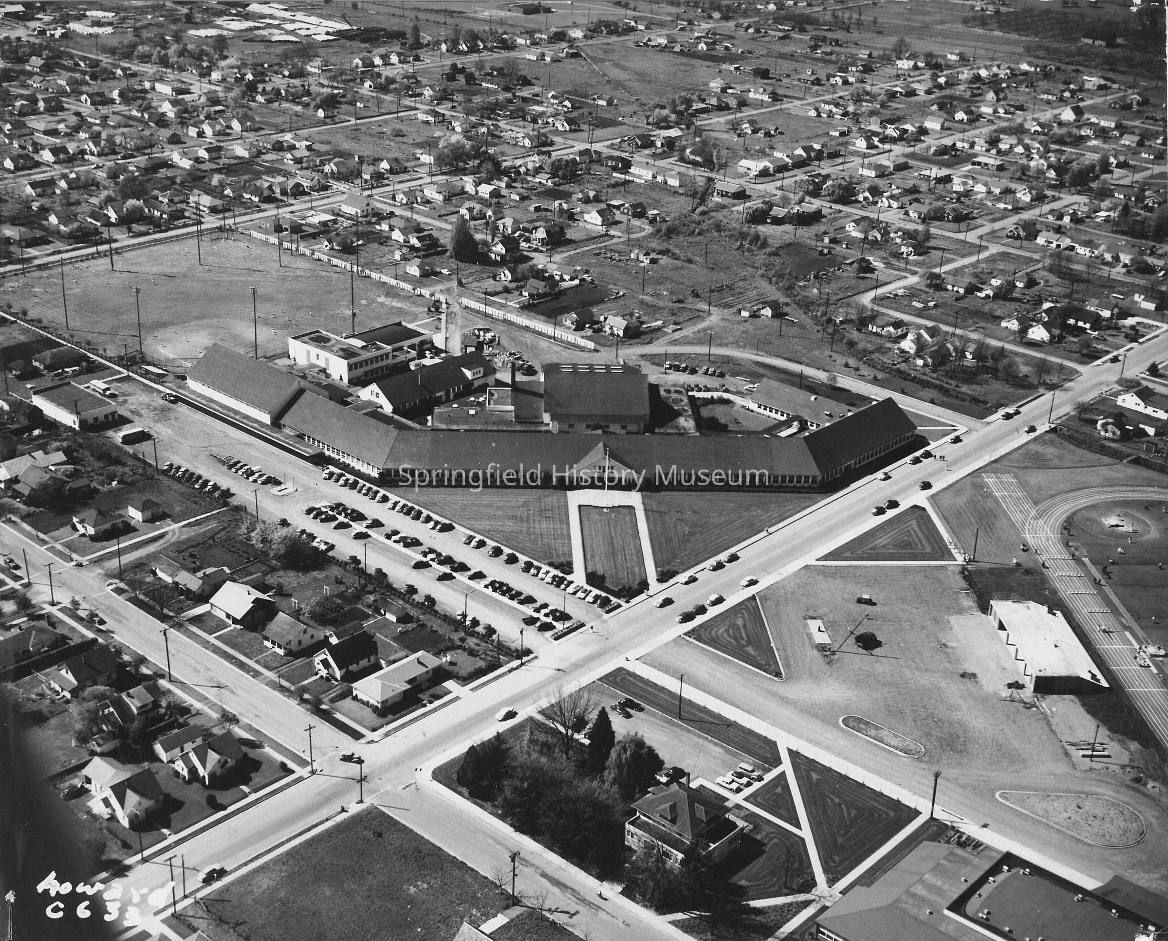 Photograph of aerial view of Springfield High School and completed track. Marked Howard C633, undatedPhotograph Details