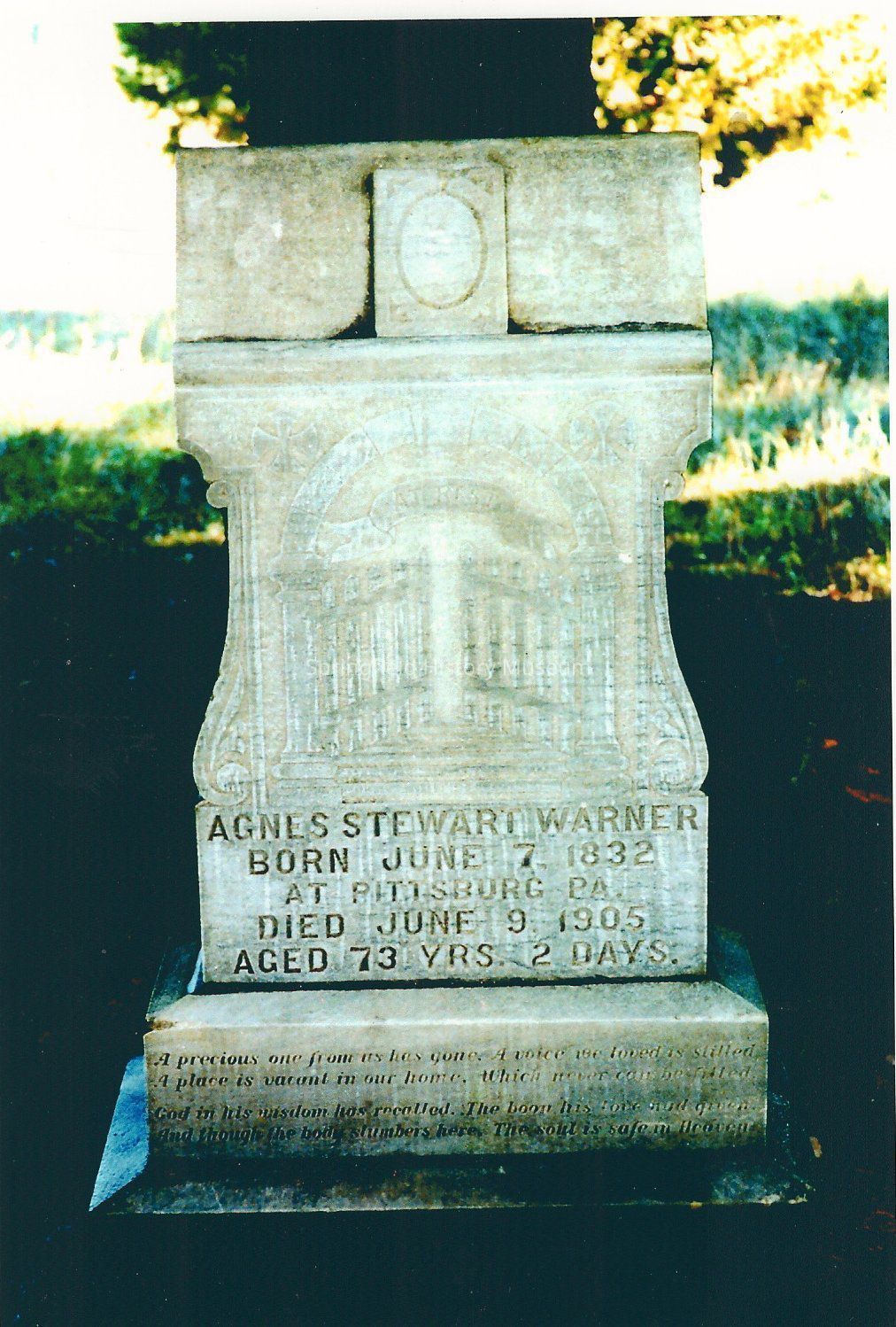 Photograph of Agnes Stewart Warner Headstone, Lane County, Oregon, UndatedEntry/Object ID