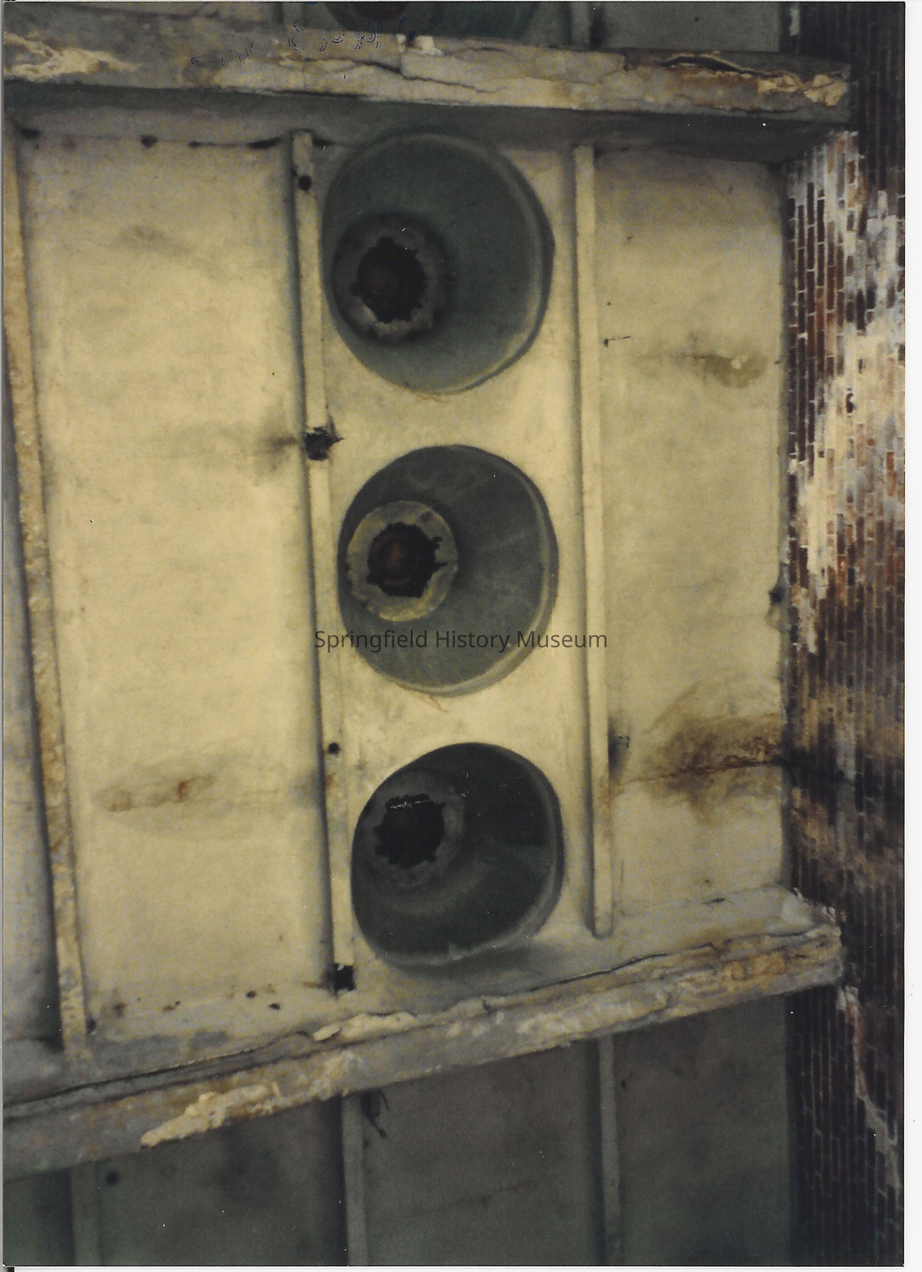 Color photo of the interior of the Albany Electric Plant; built in 1908. View holes for transformers in ceiling. Building is a twin to the Springfield Museum building. Photo was taken by Kathy Jensen in 1991.