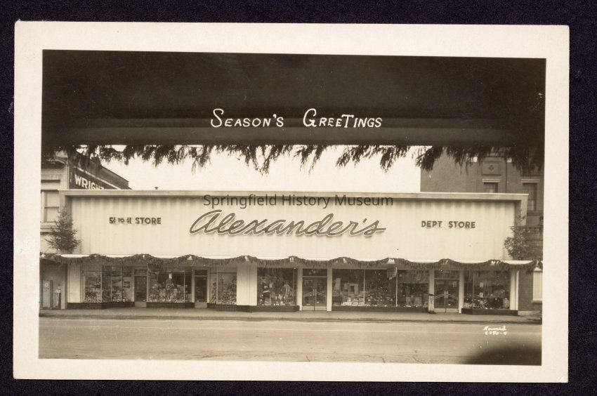 Photograph of Alexanders Dept Store, Season's Greetings, date unknown.Entry/Object ID