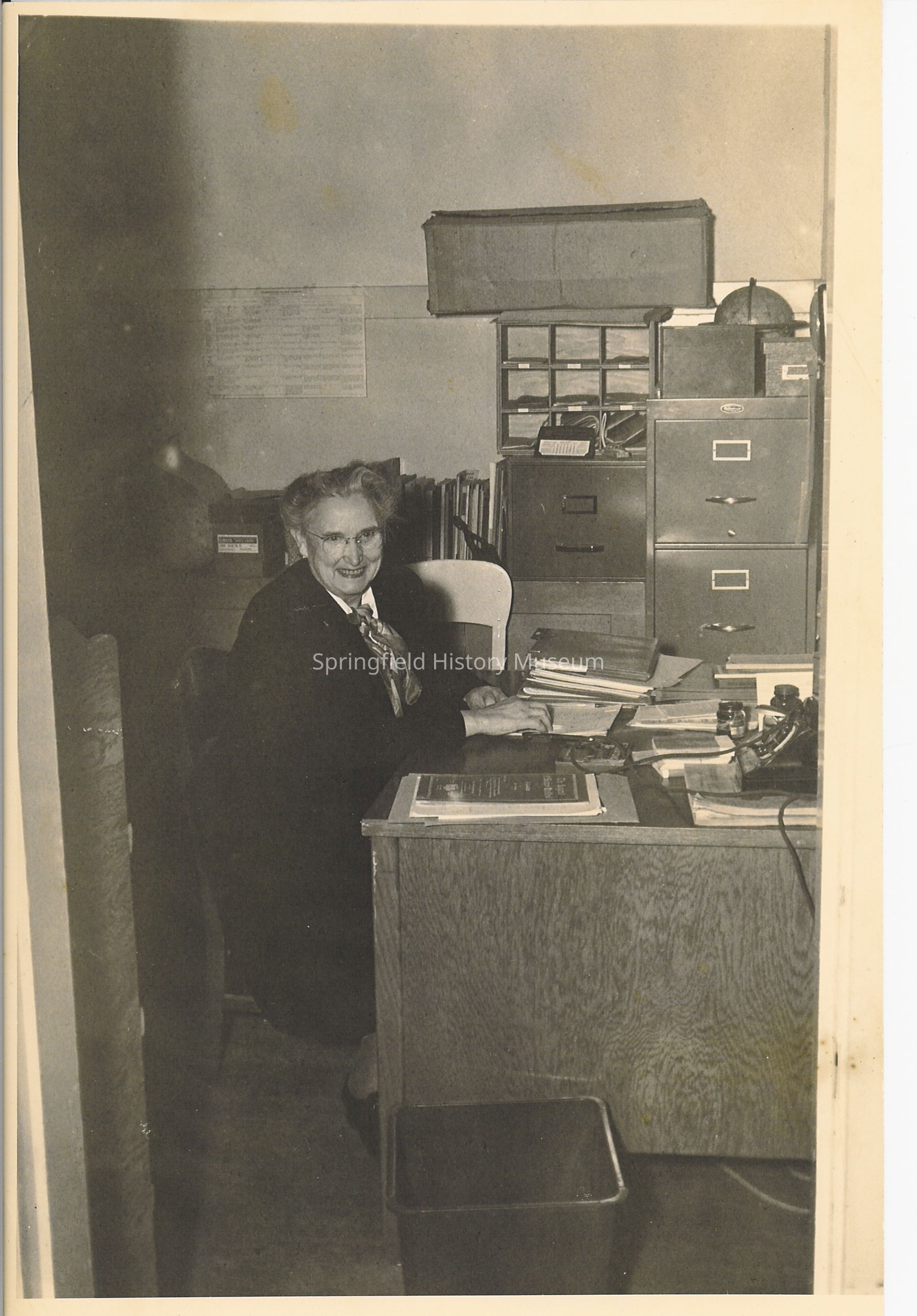Photograph of an unidentified women at a desk, unknown dateEntry/Object ID