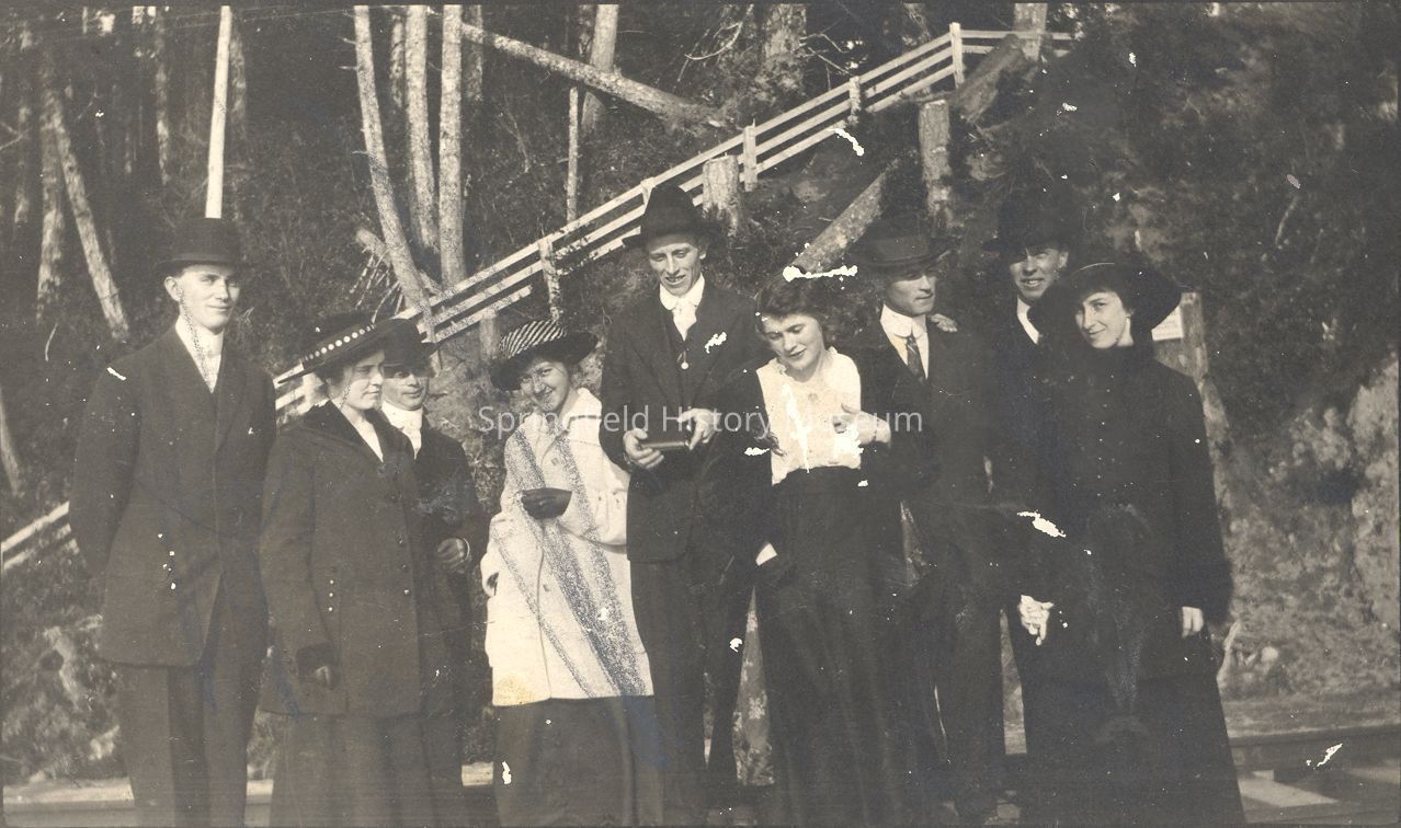 Postcard photograph of an unknown group of people in formal attire, Springfield (?), Oregon, undated.Collection
