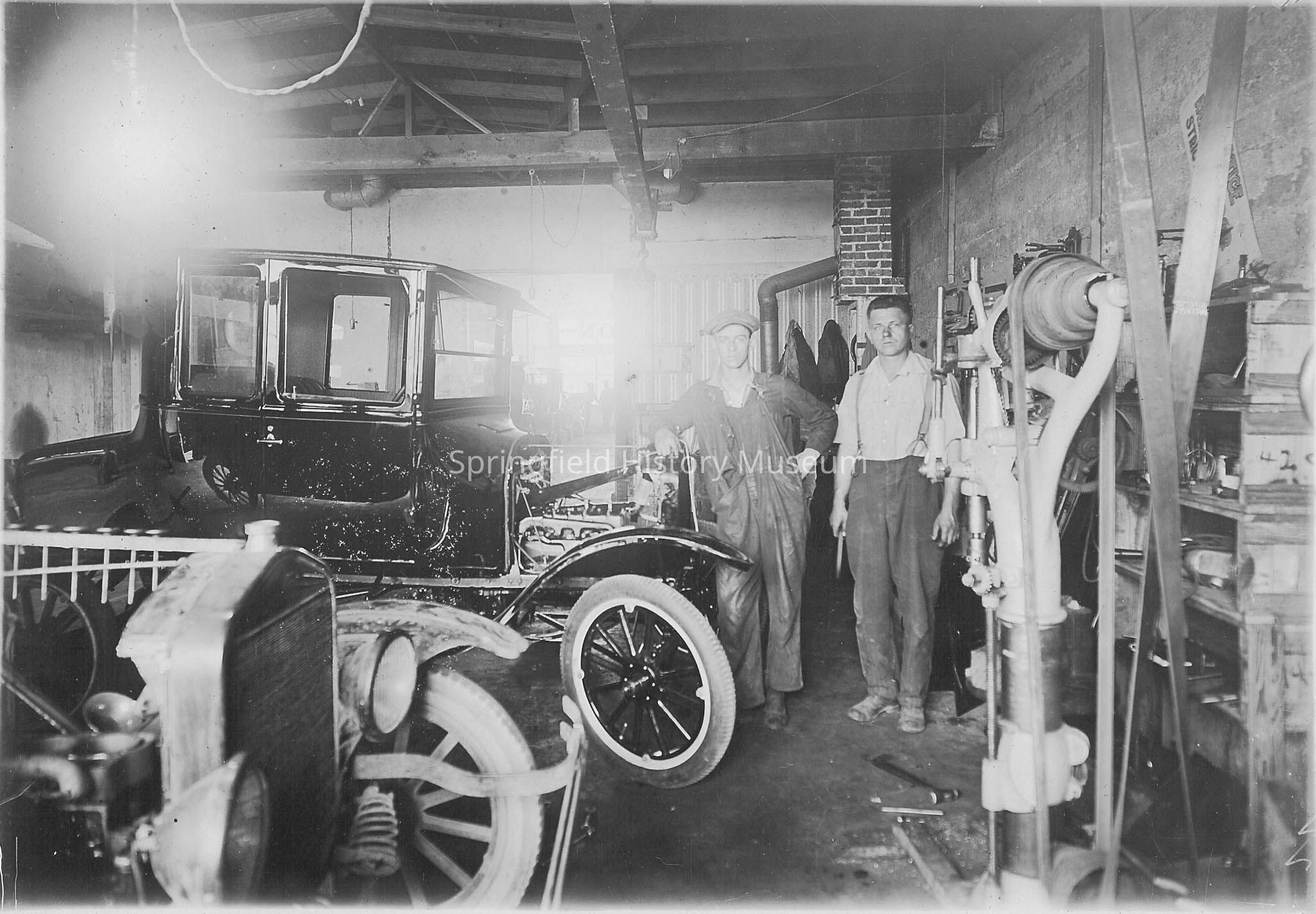 Business & Industry, People, Anderson Wing Garage, Stevens-Perkins Building, Main Street, 3rd Street, 4th Street, Car Garage, Mechanic, Auto Shop, Gene Walker, Henry Korf, Business, Business & Industry--Anderson Wing Garage, Buildings--Stevens-Perkins Building, Springfield--Streets--Main Street, Springfield--Streets--3rd Street, Springfield--Streets--4th Street, People--Groups & Individuals