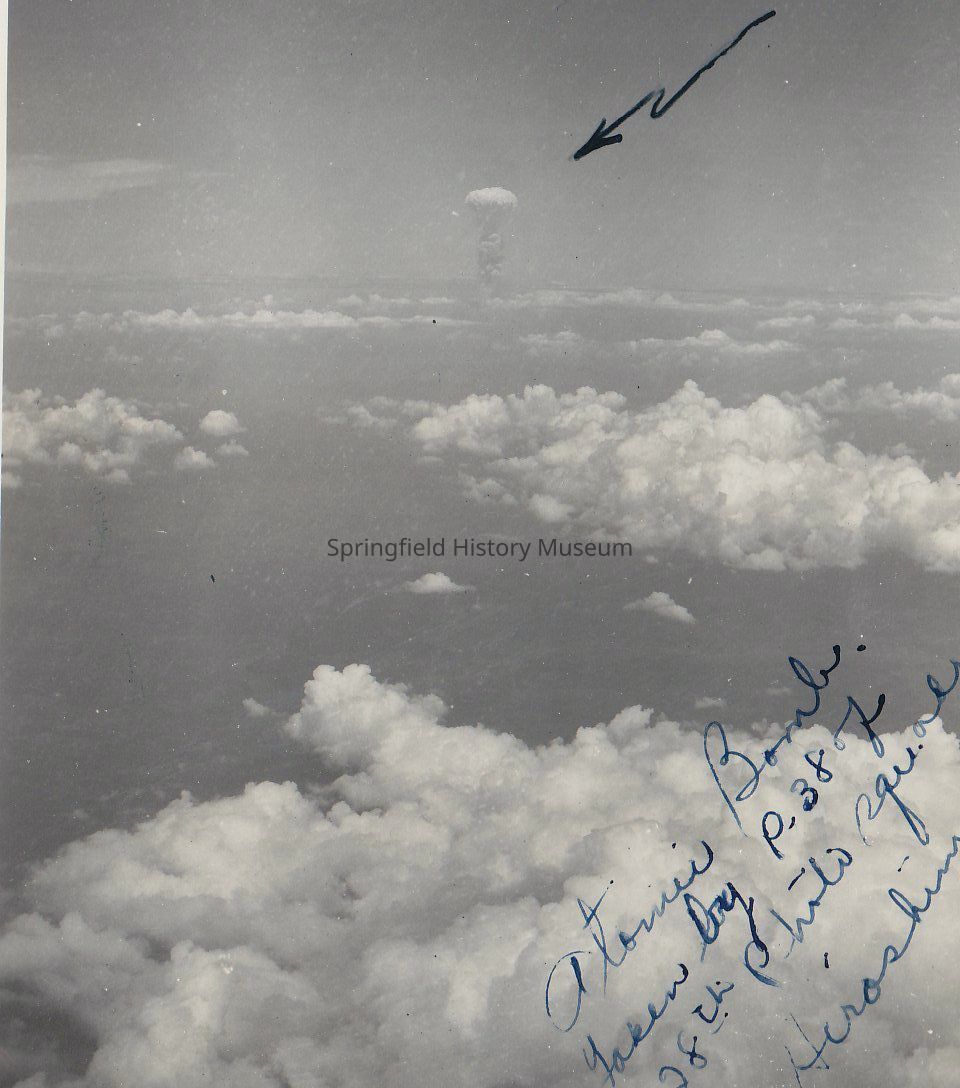 1. Photo of Atomic Bomb on Hiroshima. ( Mushroom Cloud) Taken by P.38 of 28th photo squadron at 40,000 feet.