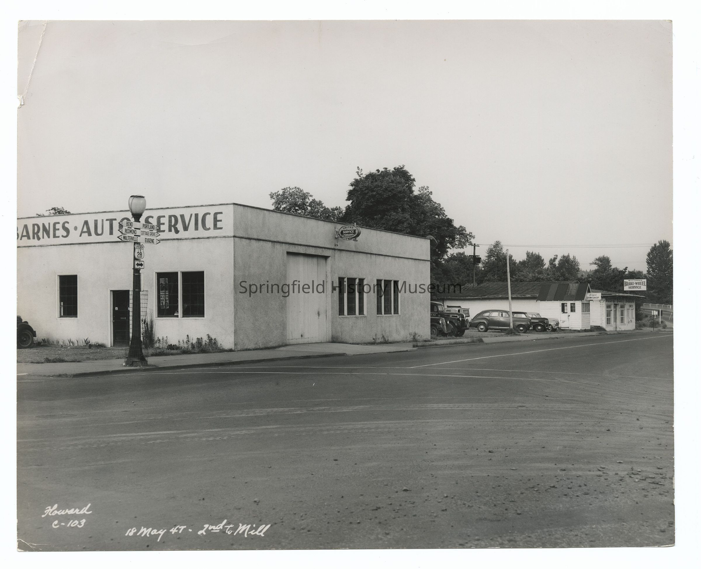 Photograph of Barnes Auto Service, Main Street, 2nd to Mil Street, Springfield, May 18th 1947Entry/Object ID