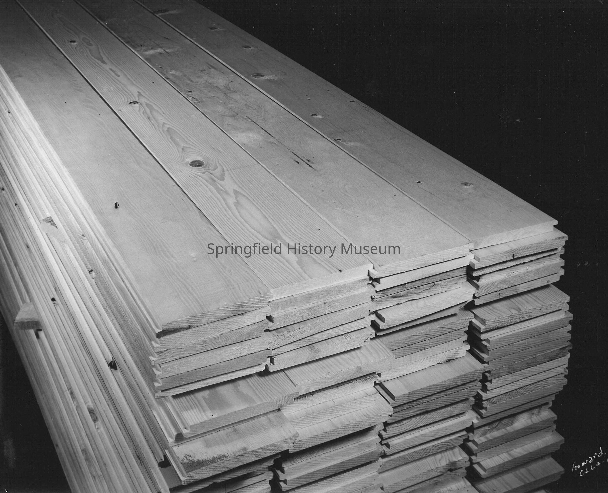 Stack of beveled tongue and groove lumber. Marked Howard C664-12