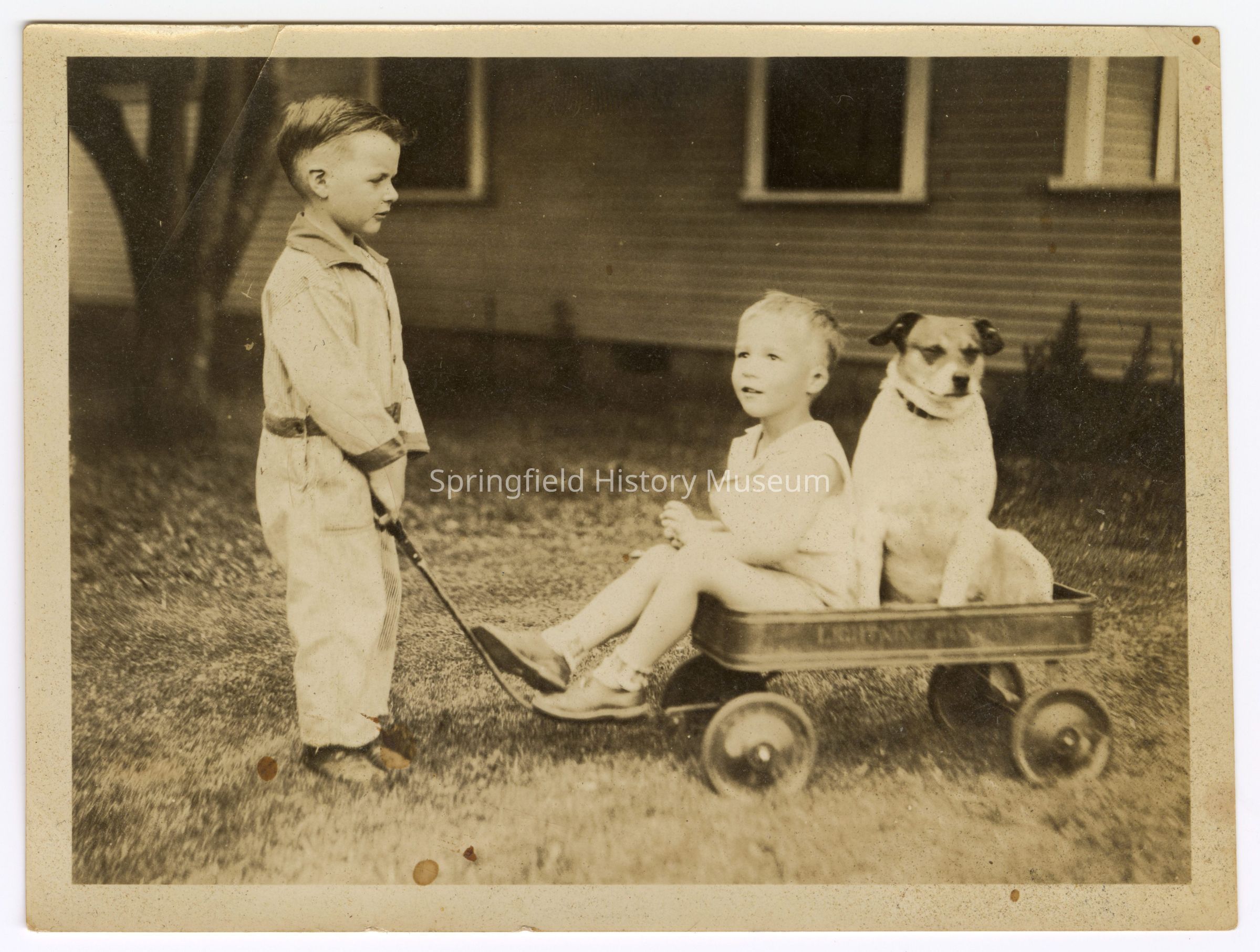 Photograph of Bill Davis Jr, Dillard Wright and dog Jyp, 1928-1929Entry/Object ID
