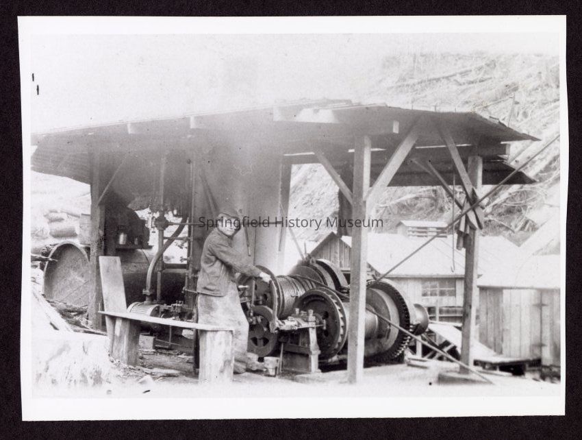 Photograph of Bill Ross operating steam donkey, Lowell, OregonEntry/Object ID