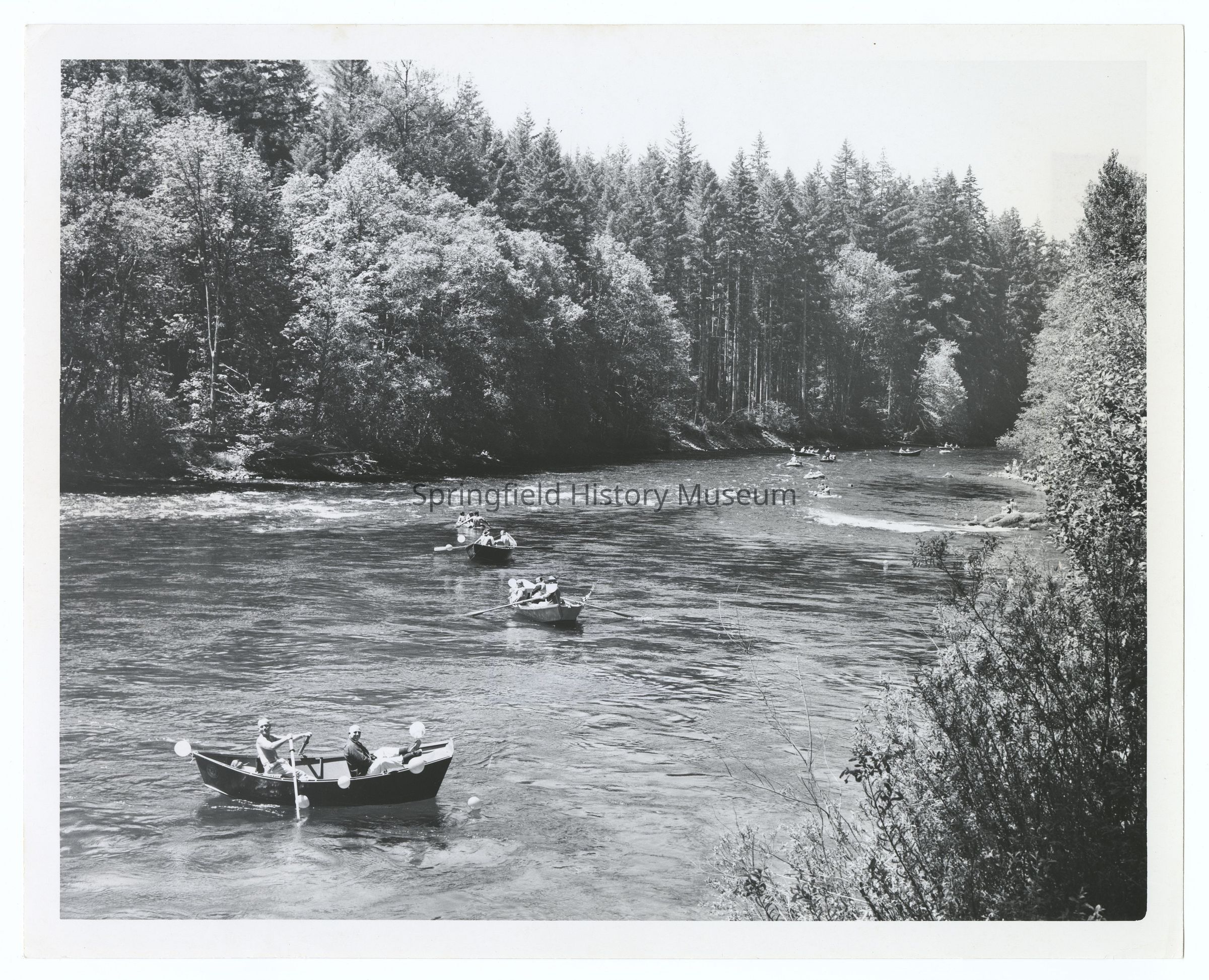 Photograph of boats participating in the McKenzie River White Water Parade, undated, circa 1969
