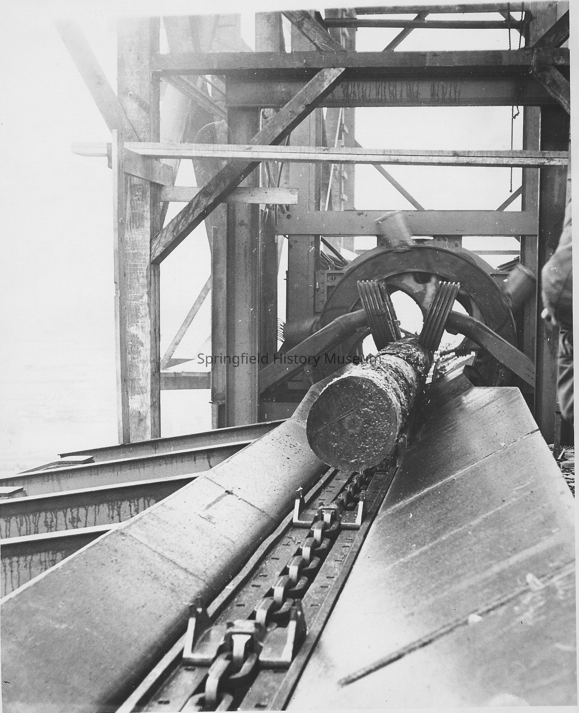 Barker machine in operation at the Booth-Kelly mill during renovations in 1956.