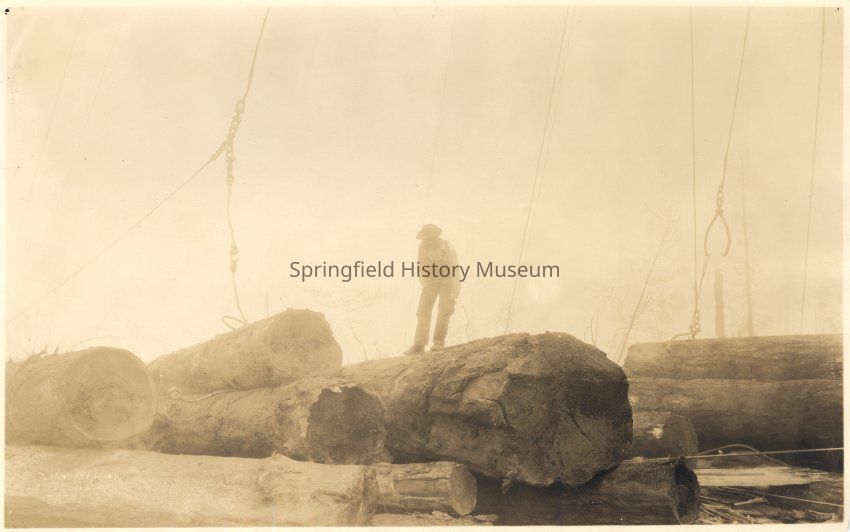 Photograph of Booth-Kelly log loading, one unidentified man on log, no datePhotograph Details