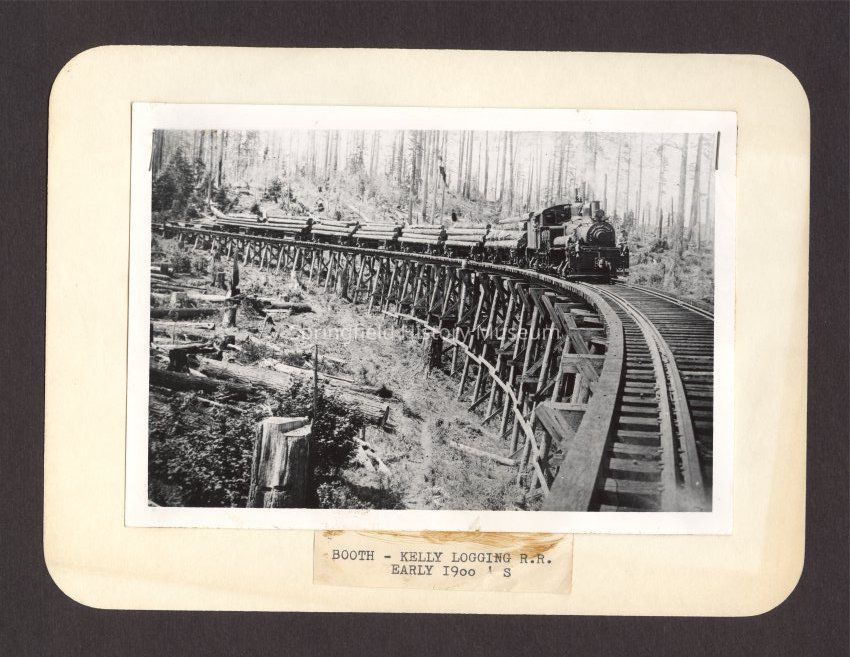 Photo is stapled to piece of paper with tag reading "Booth-Kelly Logging R.R. Early 1900s".Photograph Details