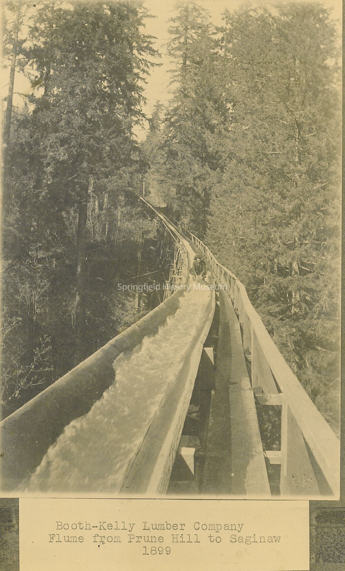 Logging, Booth-Kelly Lumber Company, Saginaw, Prune Hill, Cottage Grove, Flumes & Chutes, Loggers, Activities, Logging--Sawmills--Booth-Kelly, Business & Industry--Booth-Kelly Lumber Company, Cottage Grove Region--Saginaw, Cottage Grove Region--Prune Hill, Logging--Transportation--Flumes & Chute, Logging--Personnel, People--Groups & Individuals