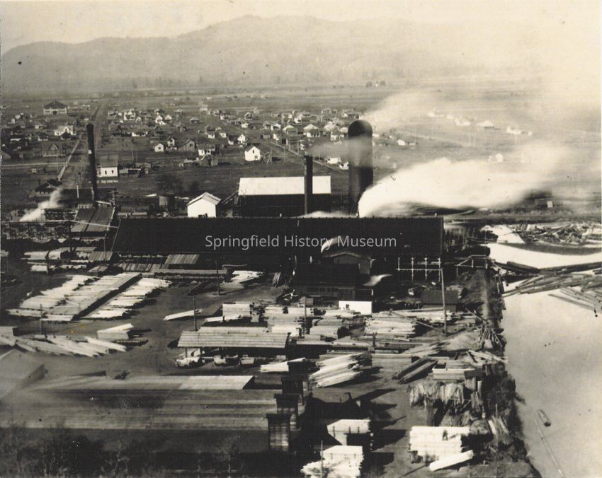 Booth-Kelly Mill looking north over Springfield toward Coburg Hills. Undated