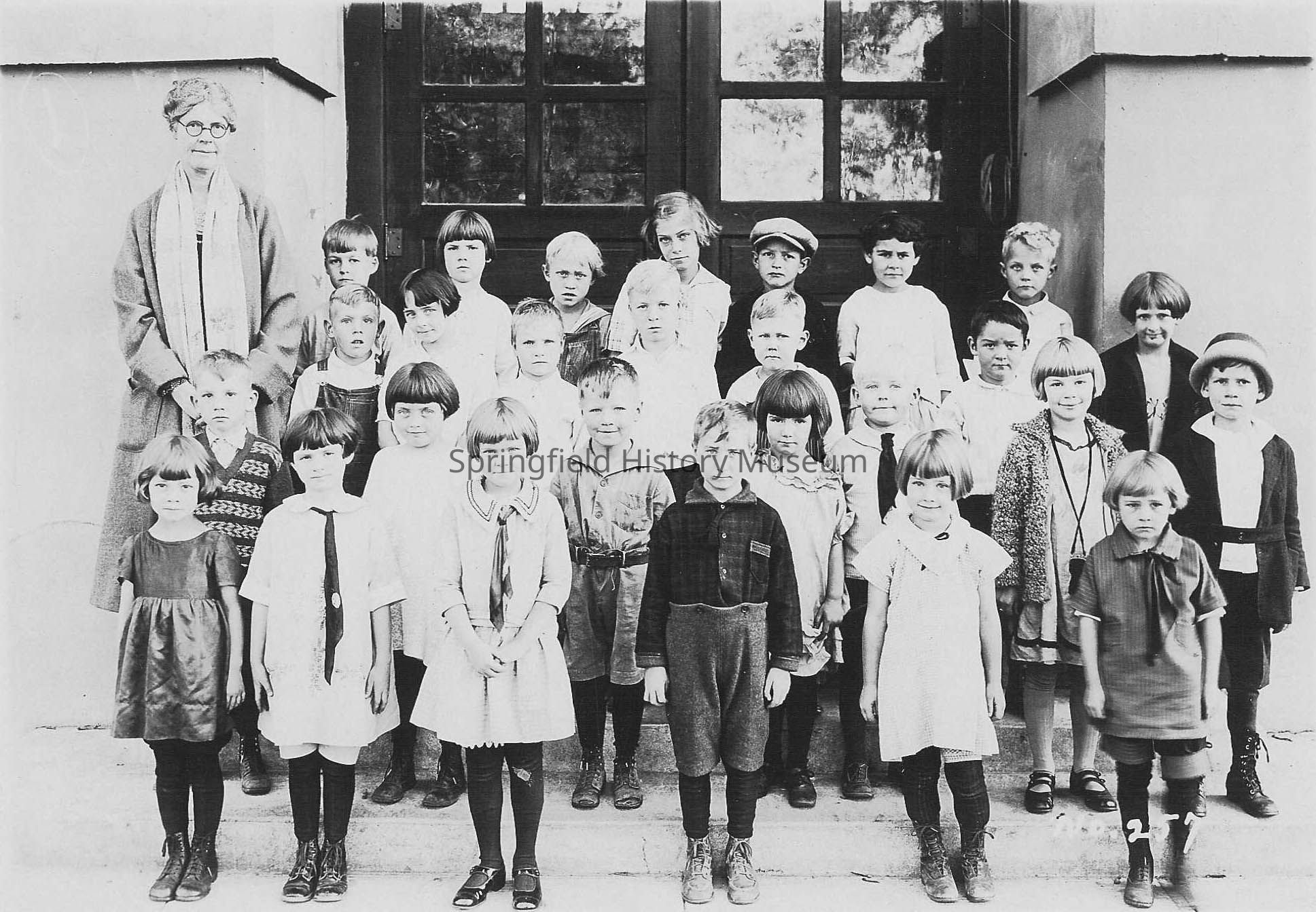 Photograph of Brattain School first grade with teacher Elizabeth Page, Springfield, Oregon, date unknown.Entry/Object ID