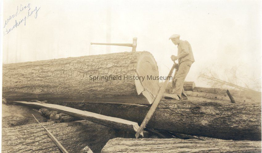 Photograph of bucking logs at Wendling, Oregon, circa 1910-1920Entry/Object ID