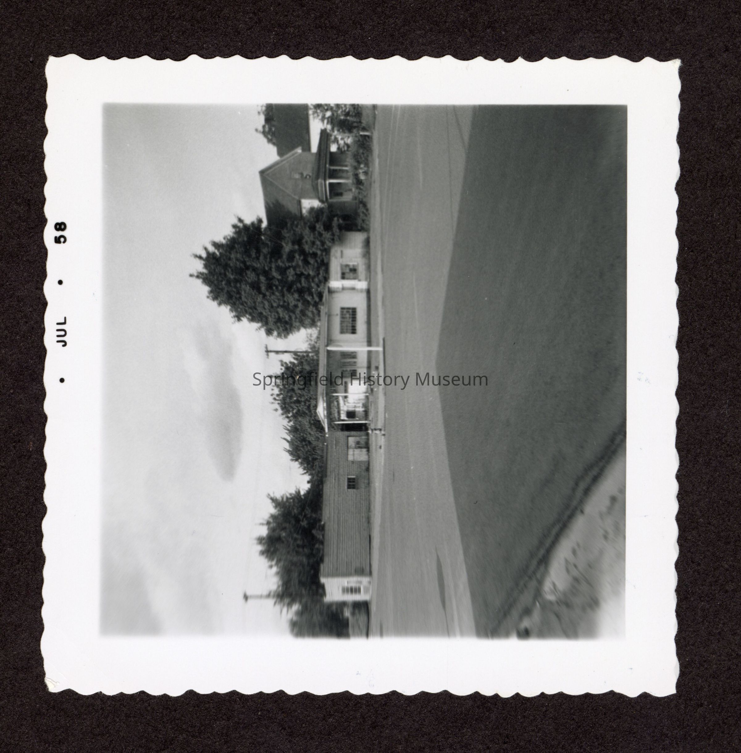 B&W Photo of unknown business on a street July 1958 in Springfield Oregon.Collection