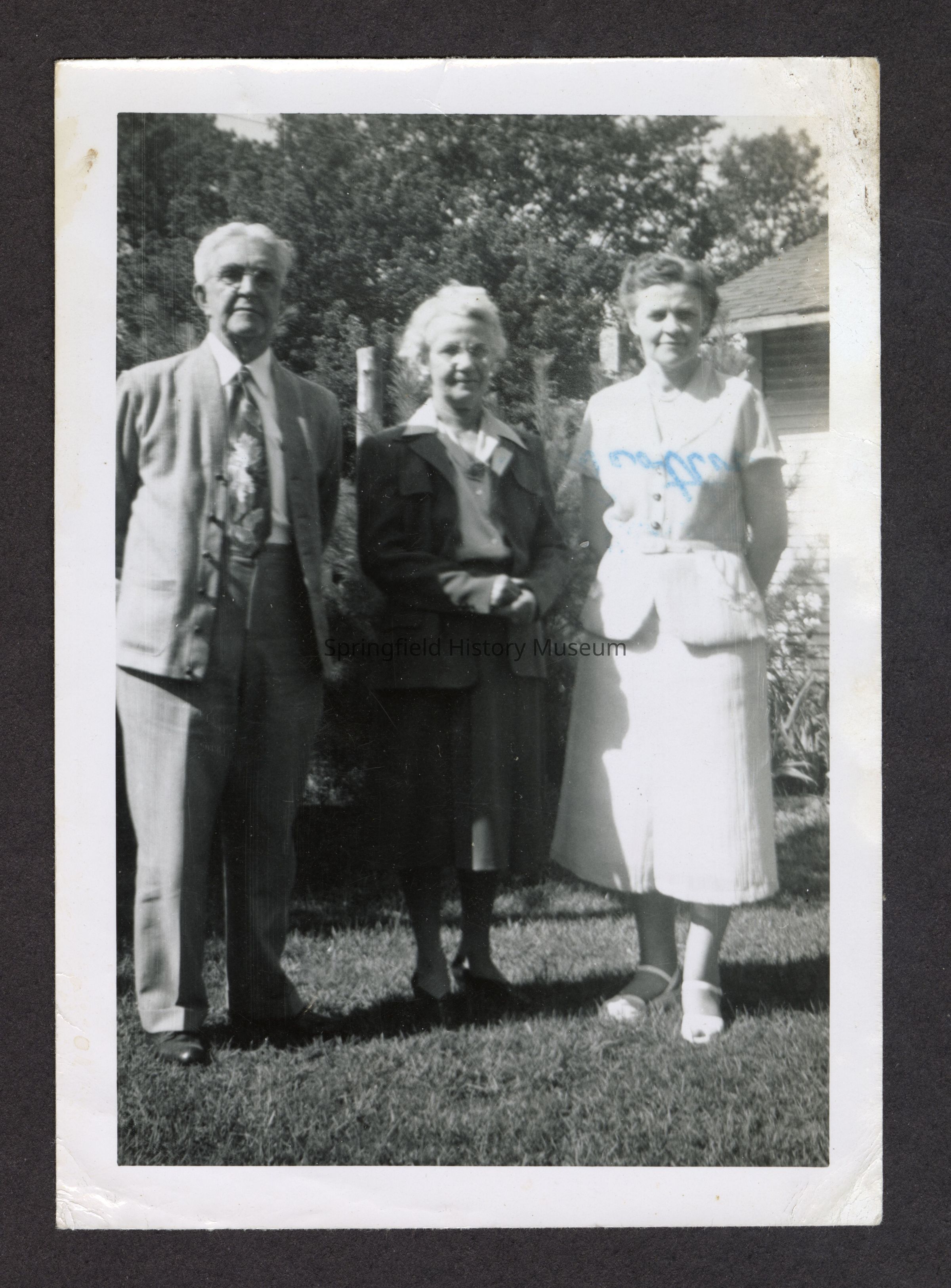 Photograph of Charles Myers, Doris Myers (on the right) and another family member, undated, circa 1950.Photograph Details