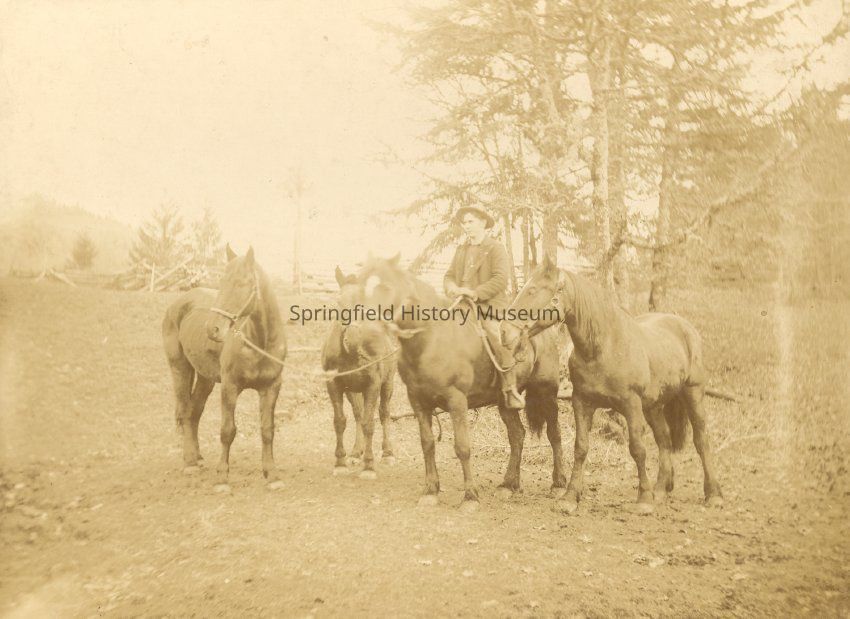 Cliff Abrams driving four horses on Willamette Log Drive, undated