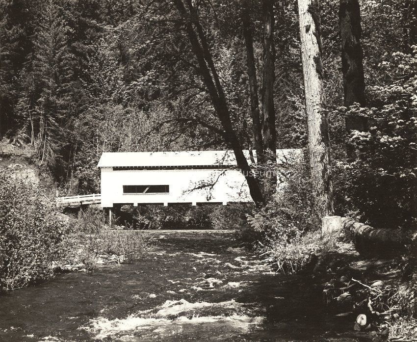 Photograph of Covered Bridge down River, No Location, Circa 1945Entry/Object ID