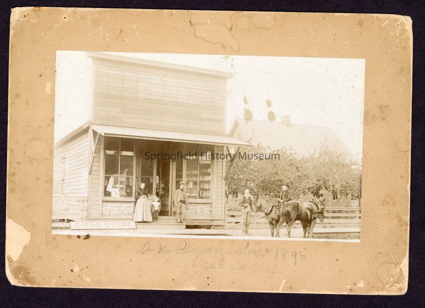 Mounted B&W Photo of Dr. Van Valzal 1896, at 4th and Main Springfield Oregon.