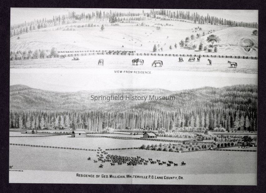 Photograph of drawing of residence of GEO. Millican. Walterville P.O. Lane County, Oregon.Photograph Details