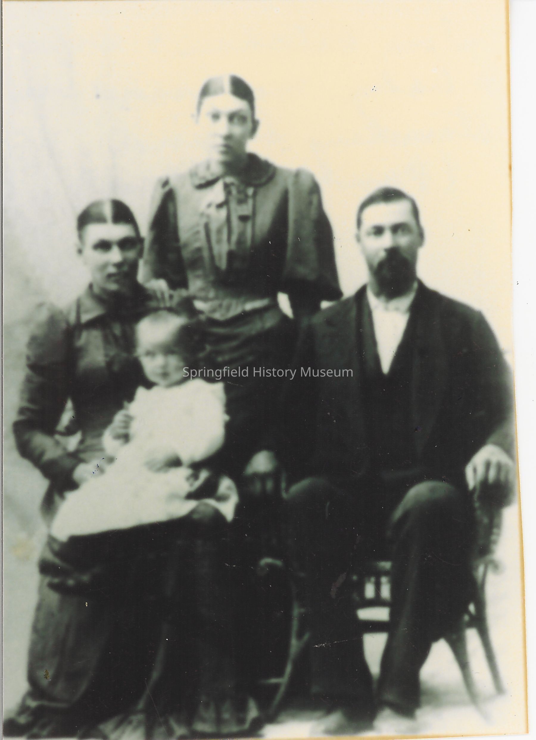 Tom Kitchen, wife and baby and donor's grandmother, Fanny Kitchen standing in back; no date.