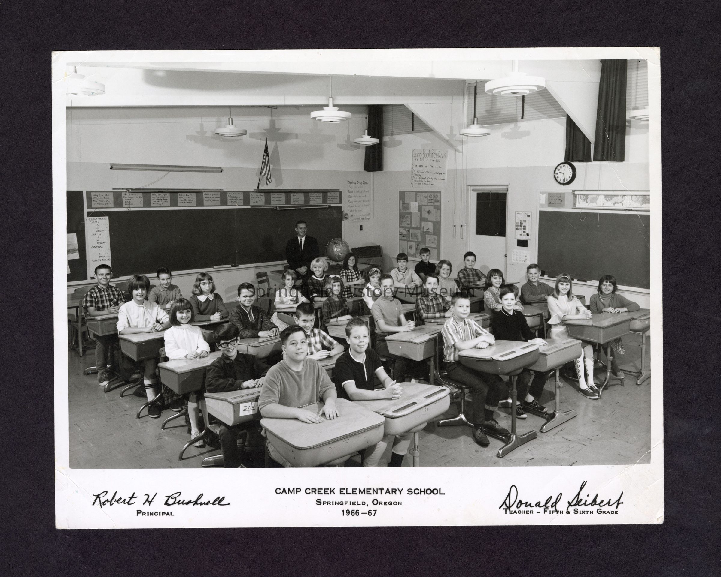 Camp Creek Class Photo, Teaher: Donald Seibert, Grades 5-6, Names written on backCopyright