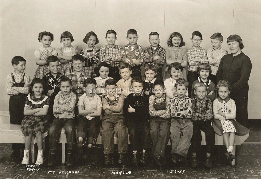 Mt Vernon Elementary School class of 1956-57. Debby Low Martin, teacher. Students appear to be about First Grade.