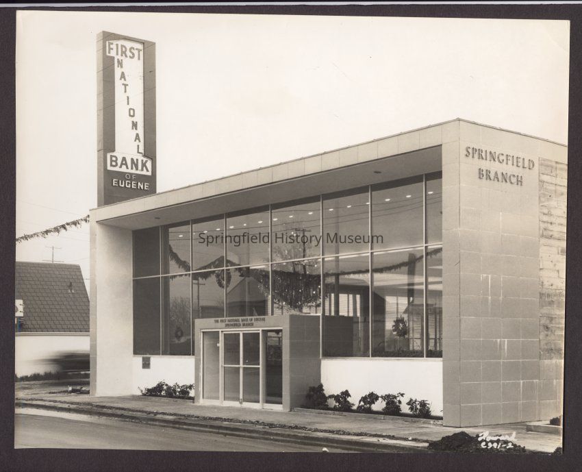 Photograph of First National Bank of Eugene Springfield, Oregon Branch. Date unknown.Entry/Object ID