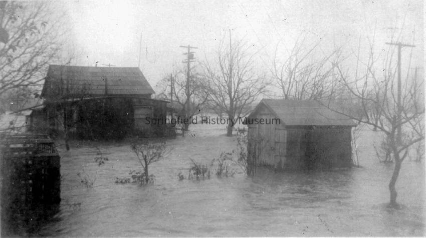Photograph of flooded houses during the 1927 Glenwood Flood, Springfield, OregonEntry/Object ID