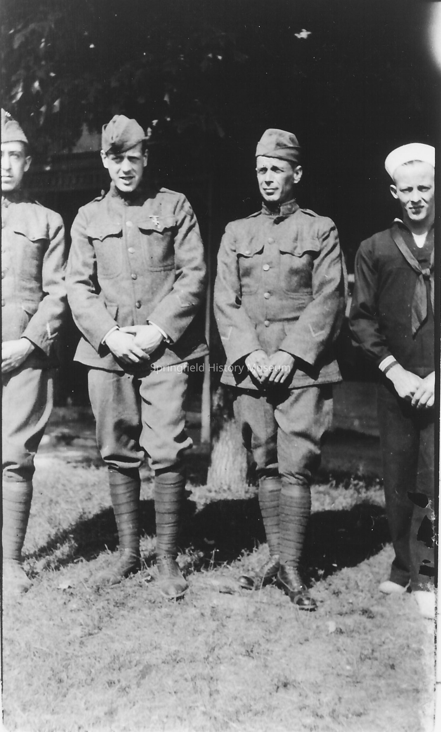 Photograph of four servicemen in uniform; World War 1. No original photo, no date