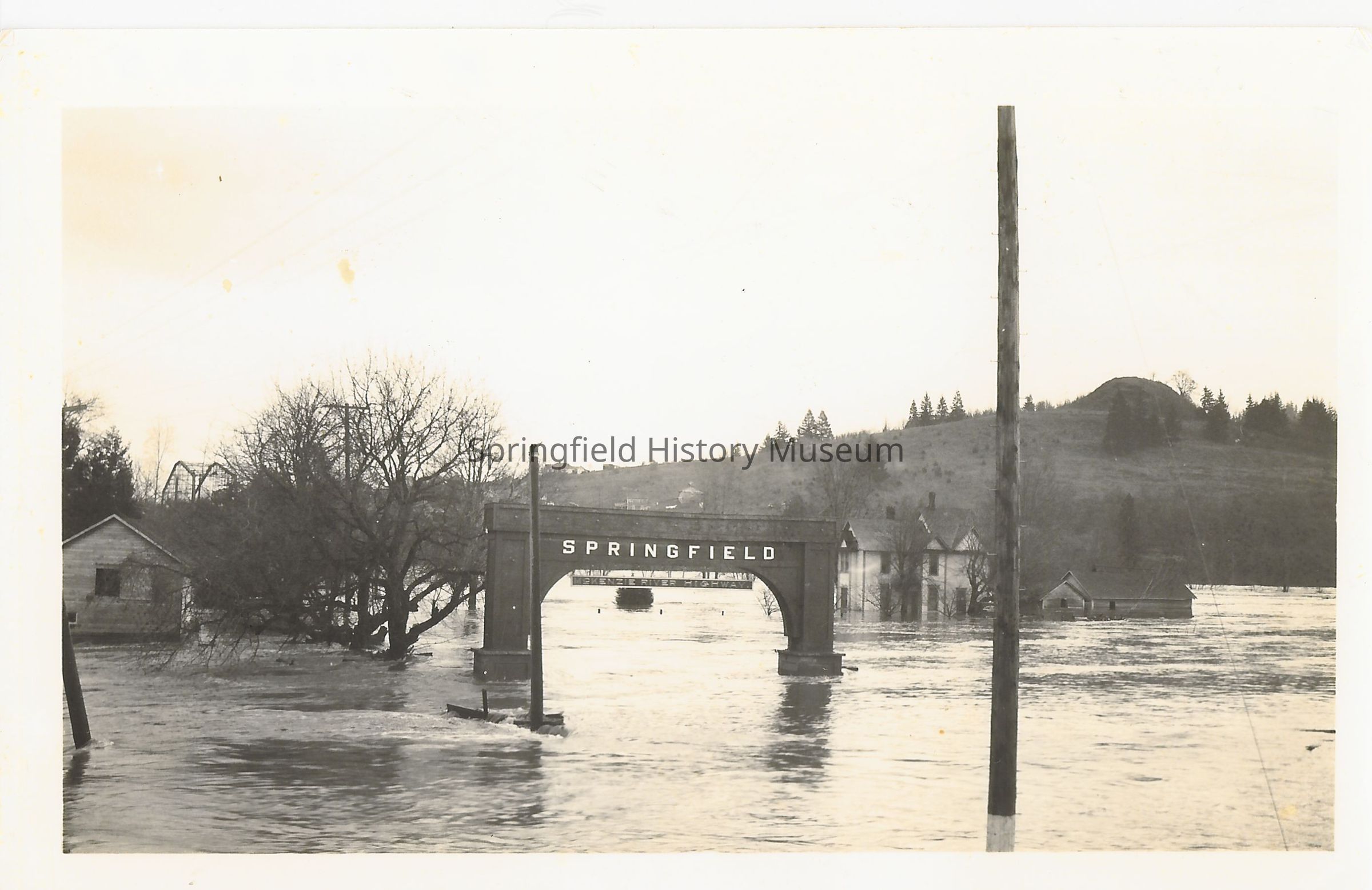Arch of McKenzie Highway, looking east from Glenwood. Flood of 1925