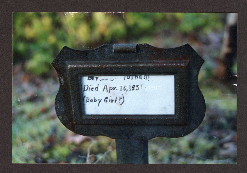 Color photograph of grave marker in Glenwood cemetery. "Died Apr. 15, 1931 (Baby Girl?)" legible on marker.Collection