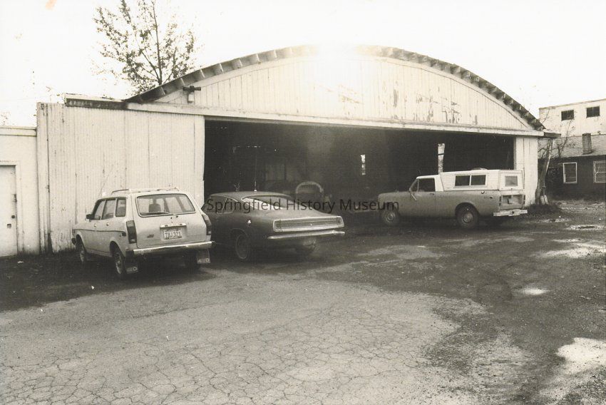 Hangars, one with lettering reading: "Springfield Oregon, Elev. 460 Ft." Undated