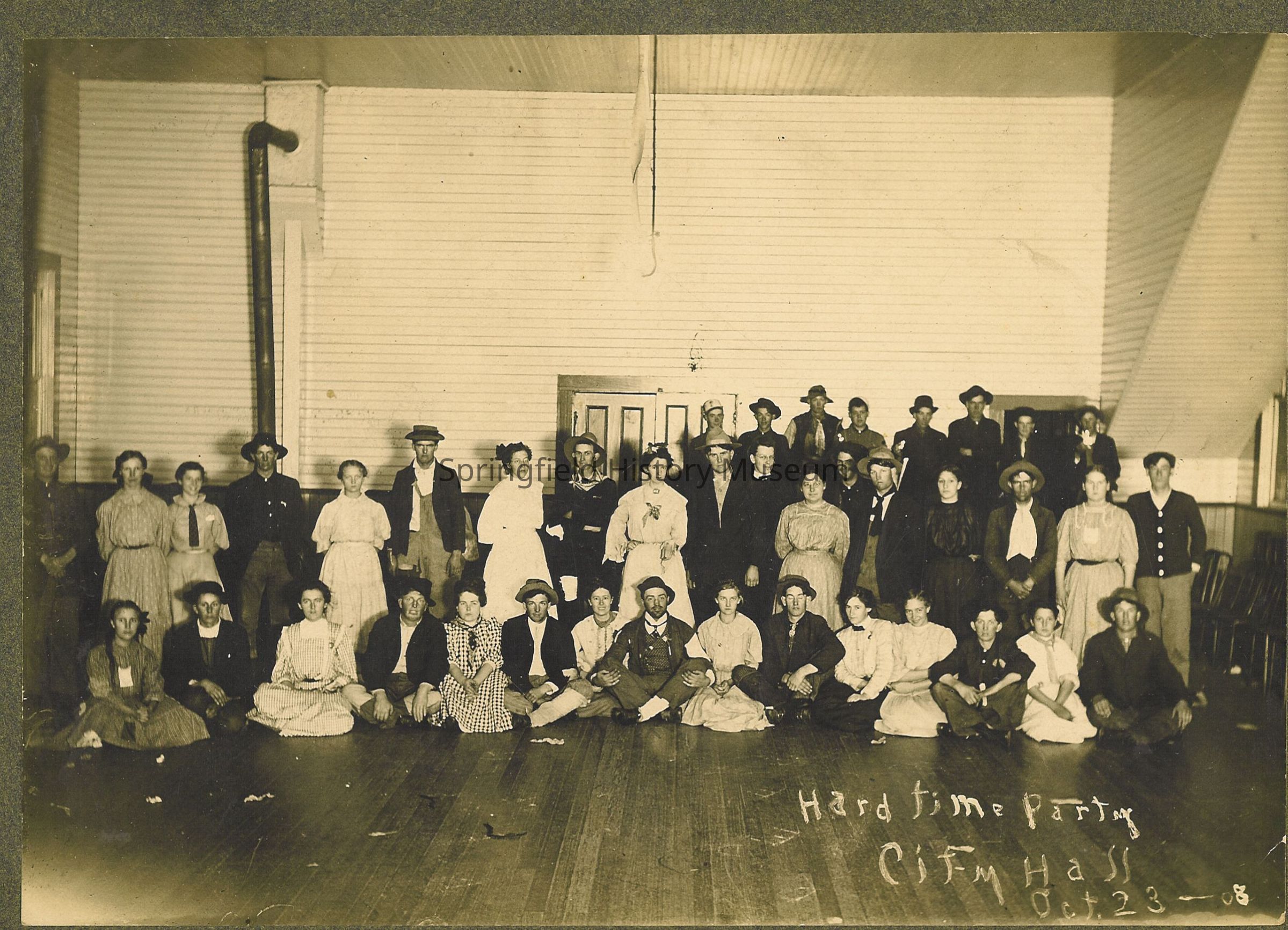 Photograph of Hard Time Party, Harrisburg City Hall, Harrisburg, Oregon, 1908Entry/Object ID