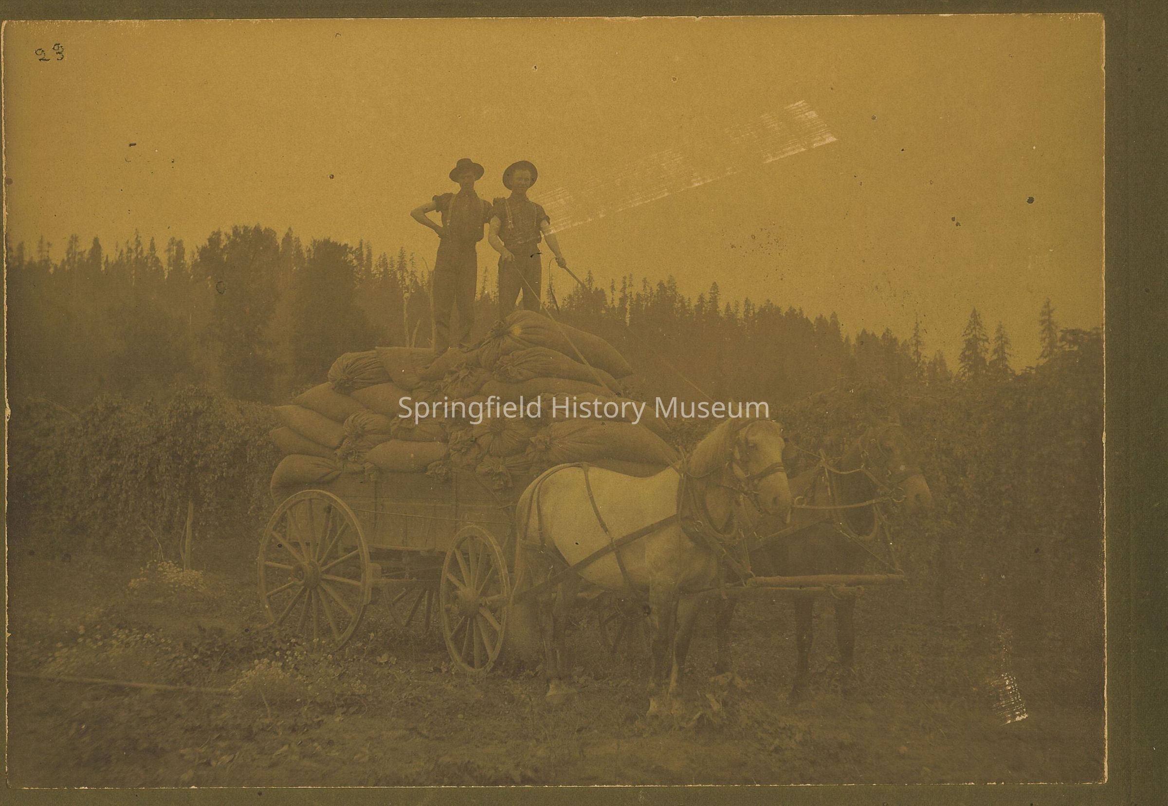 Hops, People, Hops, Horses, Arthur Easton, Wagon, Agriculture--Hops, Agriculture--Domesticated Animals--Horses, Agriculture--Equipment--Wagon, Agriculture--Personnel, Transportation--Animal--Horses, Transportation--Wagon, Domesticated Animals--Horses, People--Groups & Industry