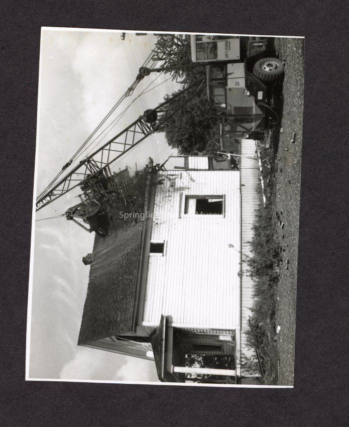 B&W Photo of home being demolish.