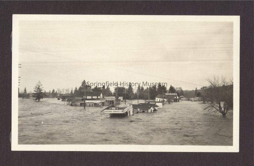 edit: Gateway Service Station, McKenzie Gateway Auto Camp, Seavers Auto Camp, and Glenwood Garage, probably 1927 Glenwood flood- duplicate of 1989.001.656, 1989.014.025, 1999.014.006 and 2021.007.103. -th 12/23/22 & 1/5/23.Collection