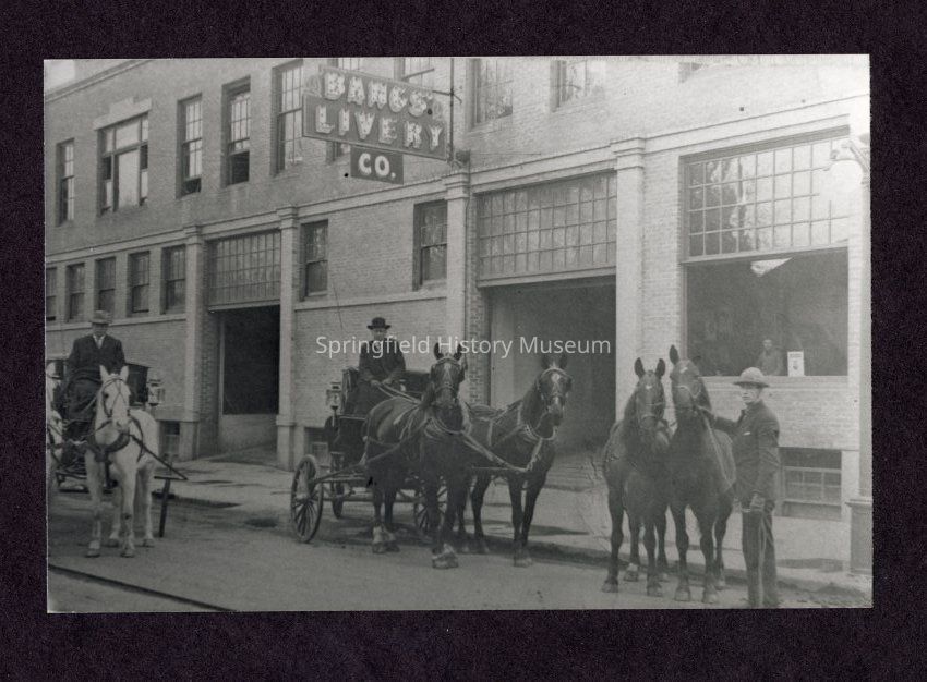 Photograph of horses and wagons on the street outside Bangs Livery Co, Eugene, OregonEntry/Object ID