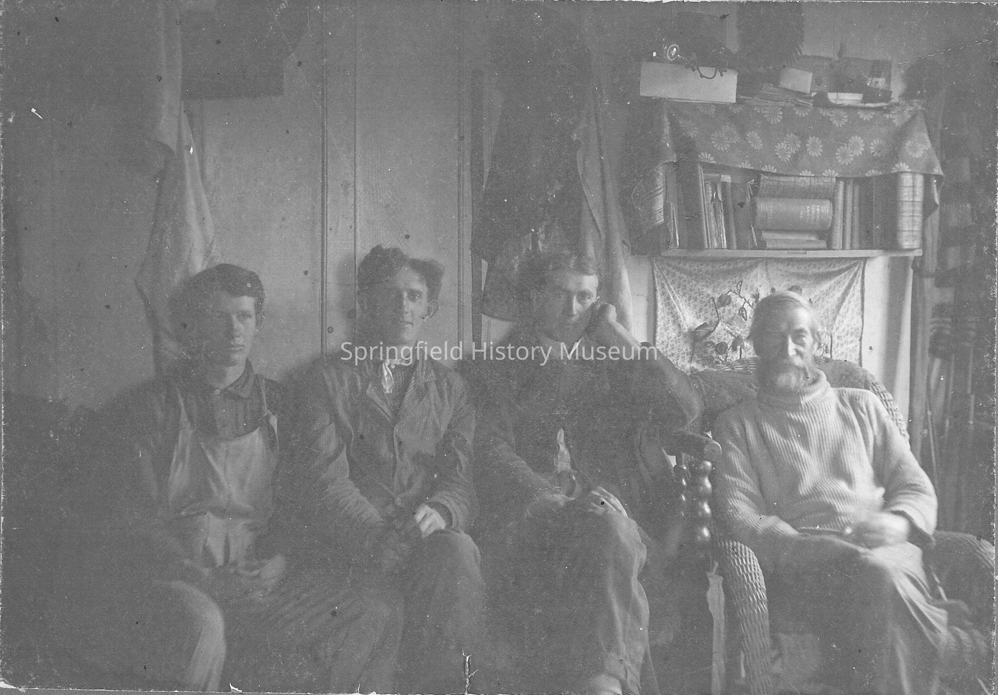 From right to left: Alexander Seavey, Jess Seavey and two unknown men seatedCollection
