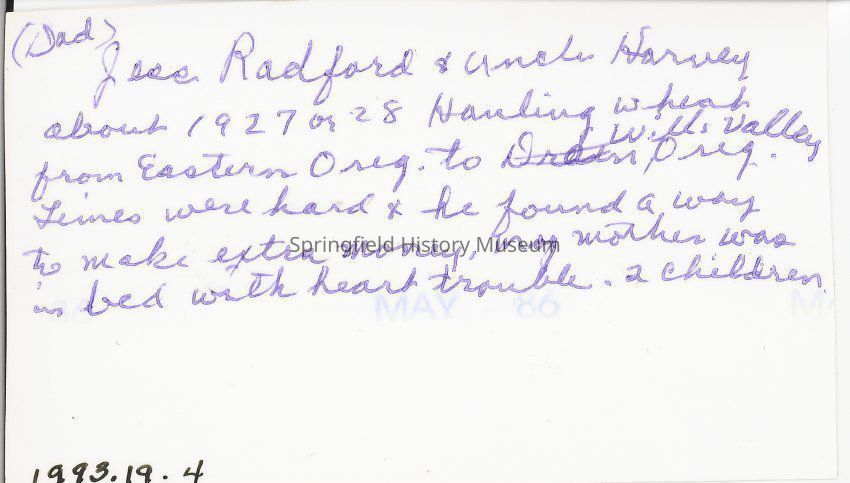 Images on this website are provided by the Springfield History Museum for educational purposes. Researchers assume all responsibility for copyright questions. For inquiries, please contact springfieldmuseum@springfield-or.gov, or use the Image Request Link.