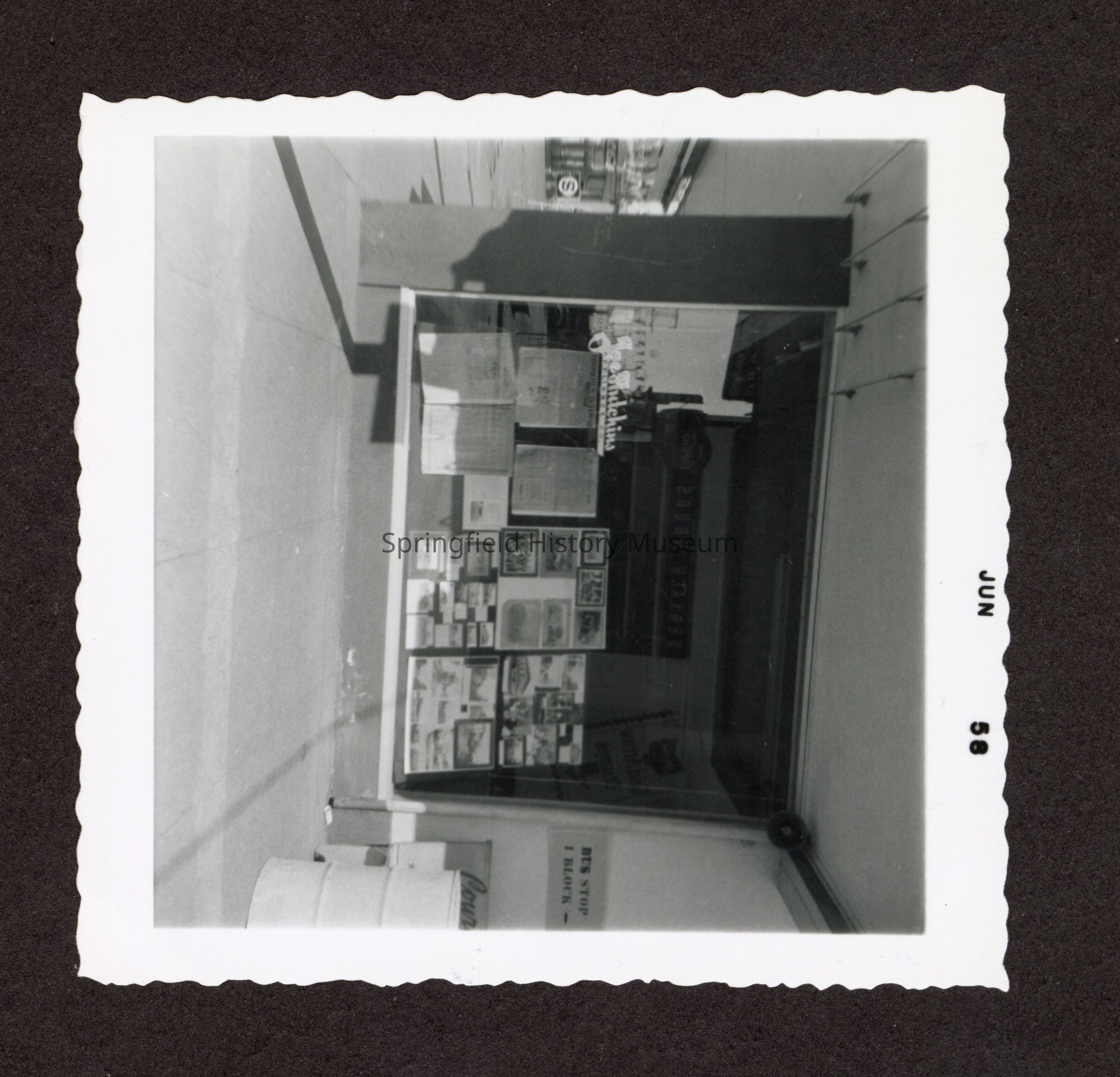 B&W Photo of Joe Hutchins Appliance Co. store window, across the street from Gerlach Drugs. Springfield, Oregon, June 1958.Collection