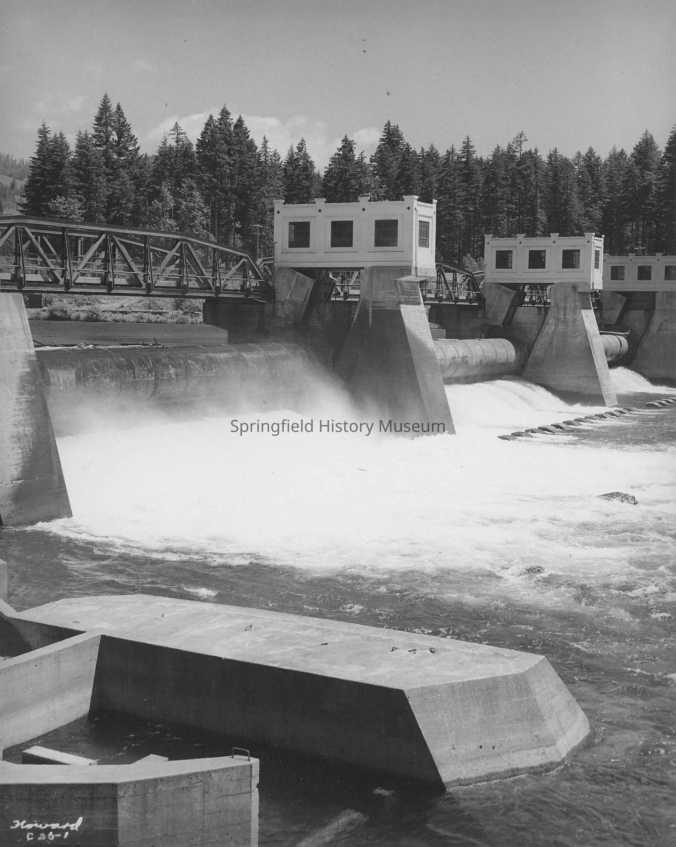 Leaburg Power dam spillway, July 1946. Marked Howard C26-1.