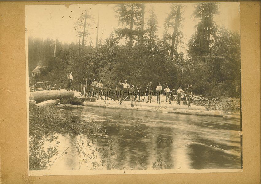 Photograph of loggers with Peaveys on Fall Creek, OregonEntry/Object ID