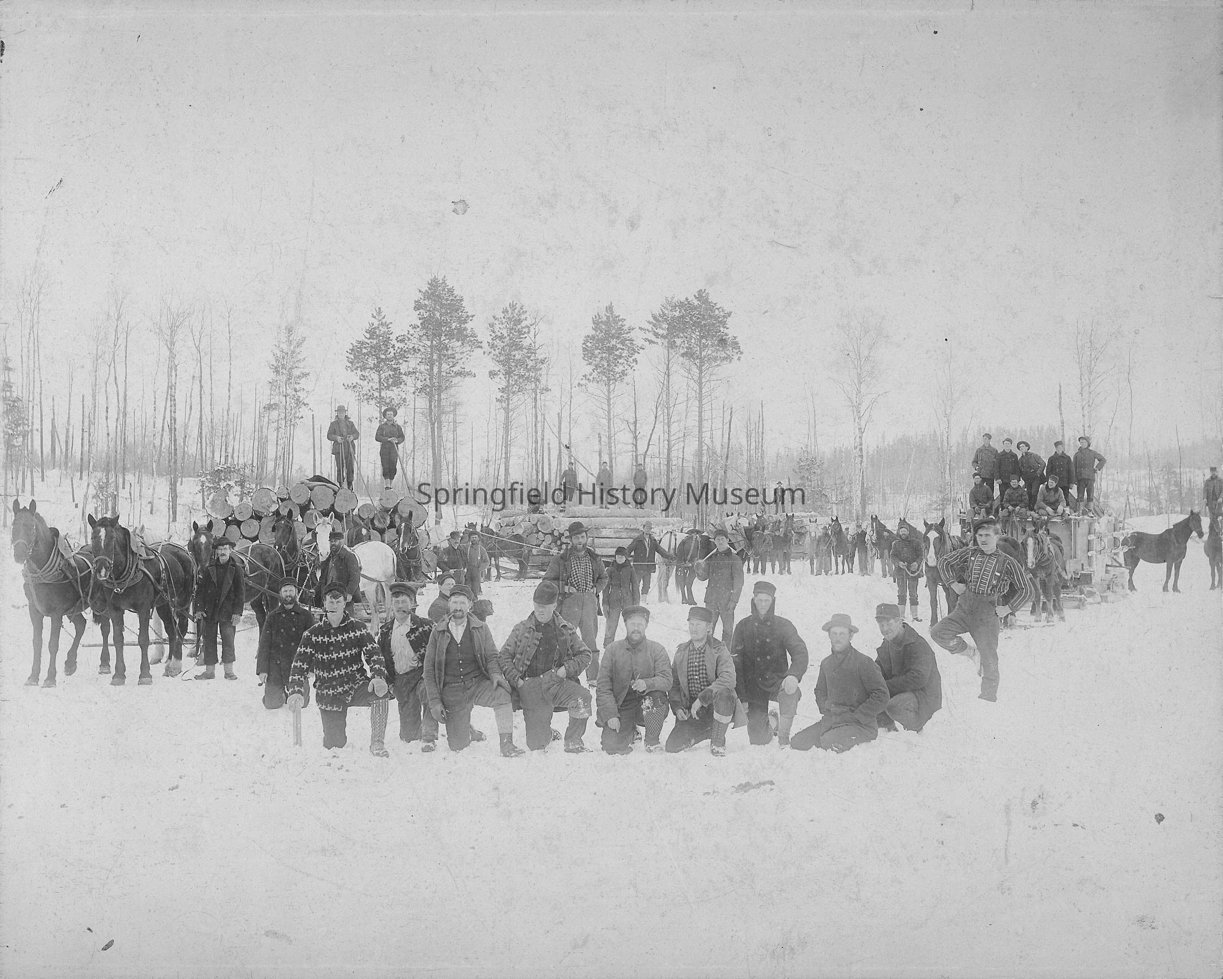 Logging, Loggers, Log Transportation, Horses, Snow, Winter, Logging--Personnel, Logging--Transportation--Animal, Domesticated Animals--Horses, People--Groups & IndividualsCopyright