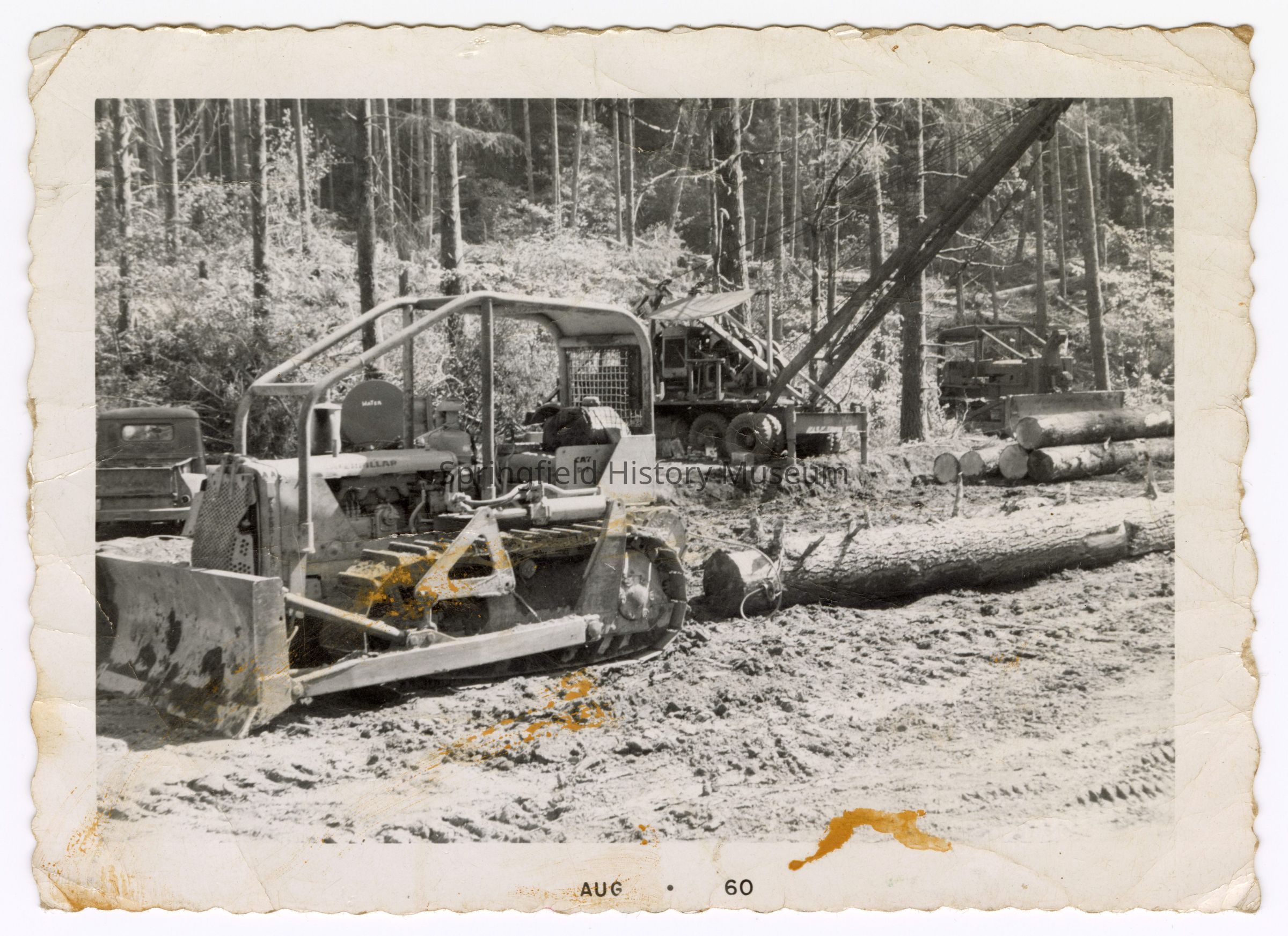 Photograph of logging machinery, 1960; Inscription front: "aug 60"