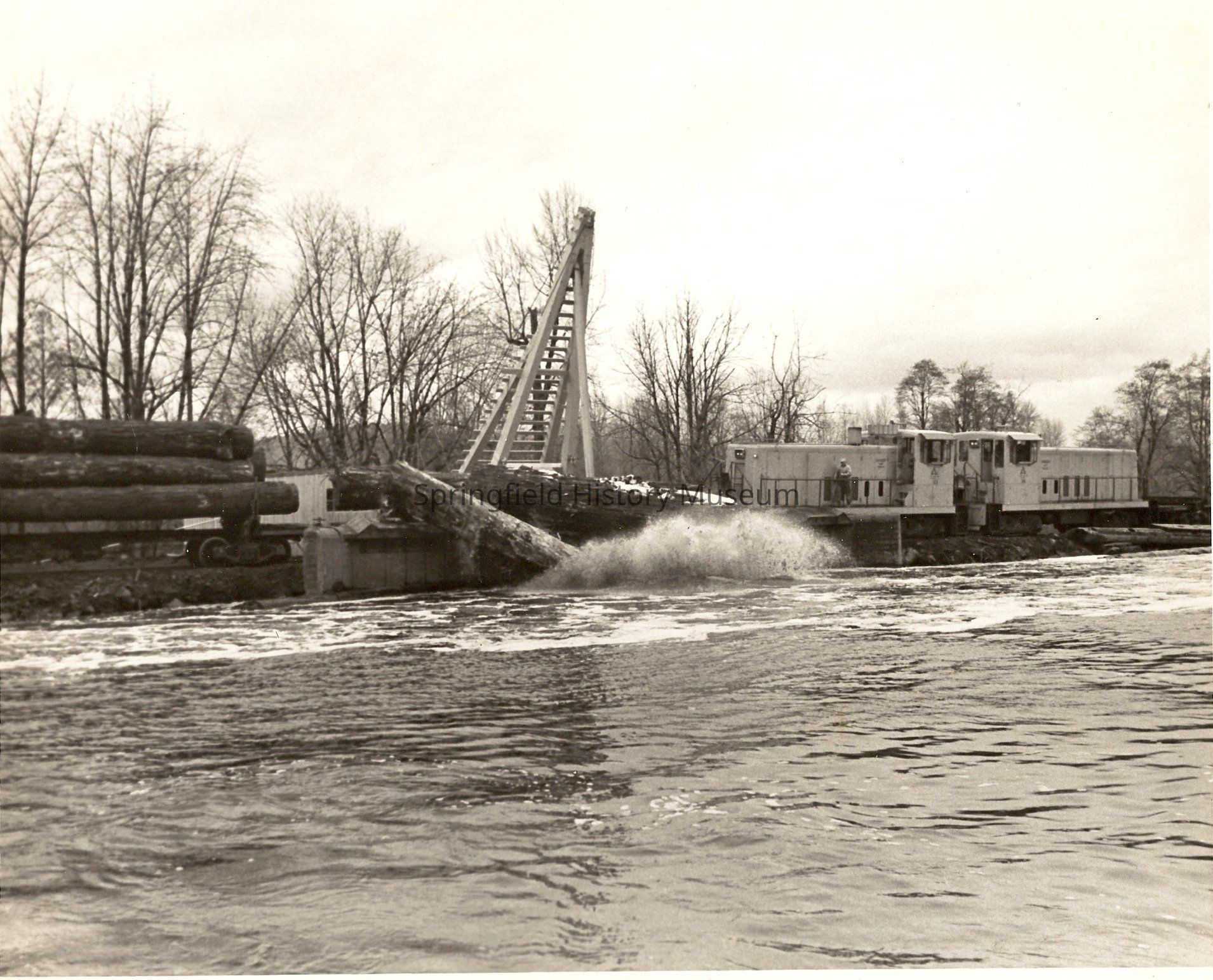 Photograph of Logs being unloaded from a Log Pond, undated
